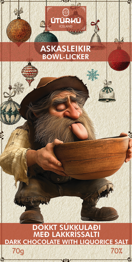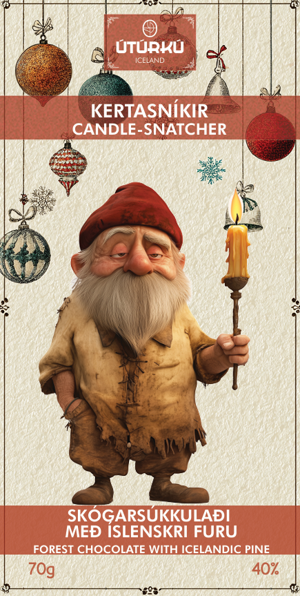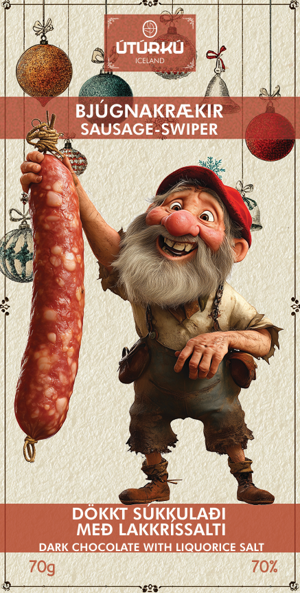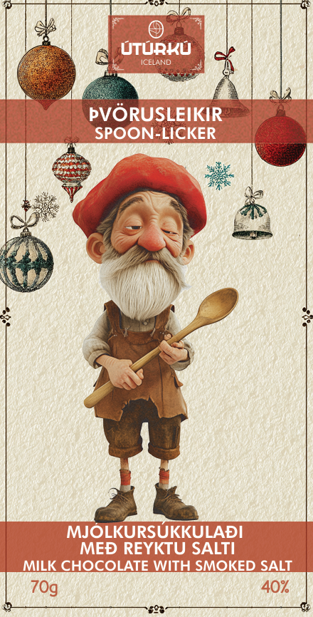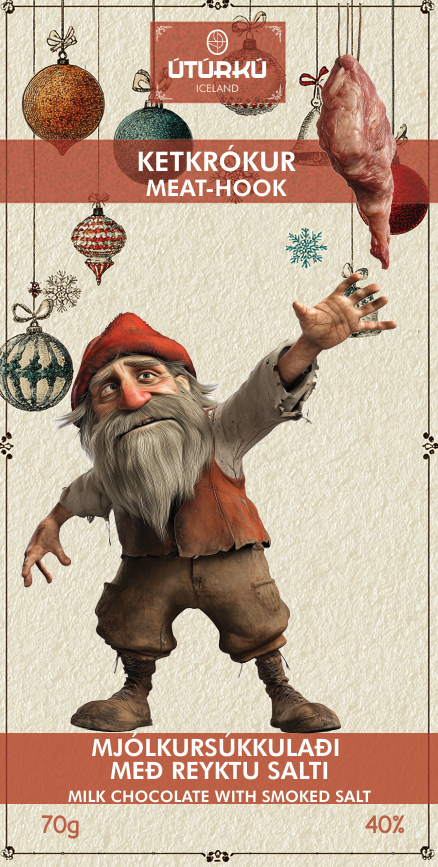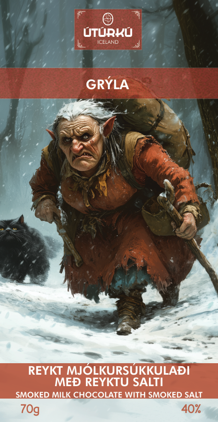This is not your average chocolate. Actually this is a chocolate like you have never tried before.It is smoked to create a smell and flavour resembling „hangikjöt“, a traditional Icelandic Christmas dish of smoked and boiled lamb. This is a chocolate for the brave, because only the brave can face Grýla.